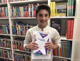 60. Vorlesewettbewerb April 10, 2019 Vincent Marco Carbonare, Klasse 6b, ist Bezirkssieger und wird die BNS beim Landesentscheid Hessen vertreten